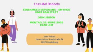 Wenn du darüber mit anderen in einer moderierten Diskussion reden willst, komm am Montag, 23. März 2026, um 19:30 Uhr zum Achter, Neuenheimer Landstraße 3A, 69120 Heidelberg. Du kannst gerne alleine oder mit Bekannten erscheinen.
